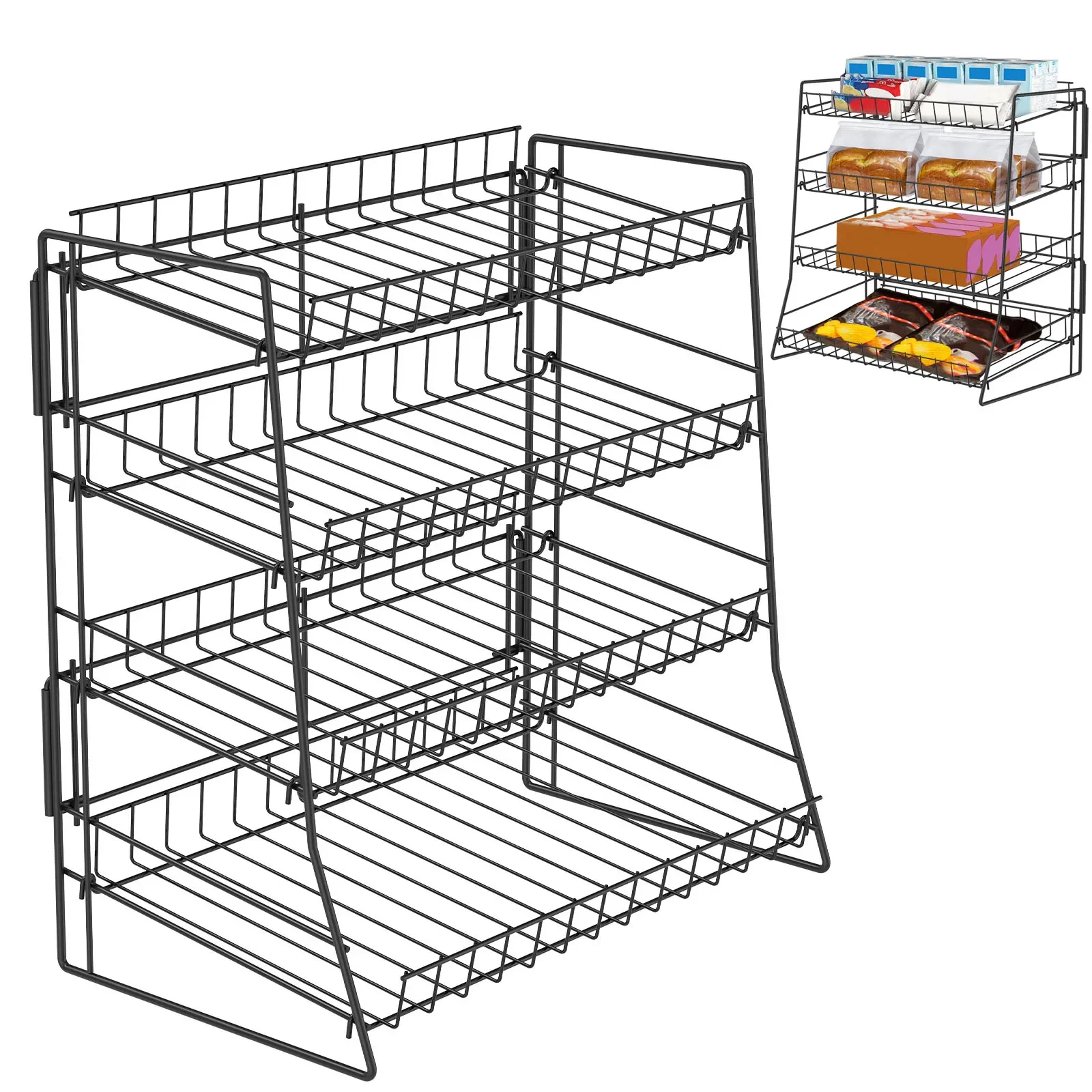 Countertop Metal Snack Stand 4 Tier Multi-purpose Storage Rack Portable Organizer Display Rack for Tabletop Kitchen and Store