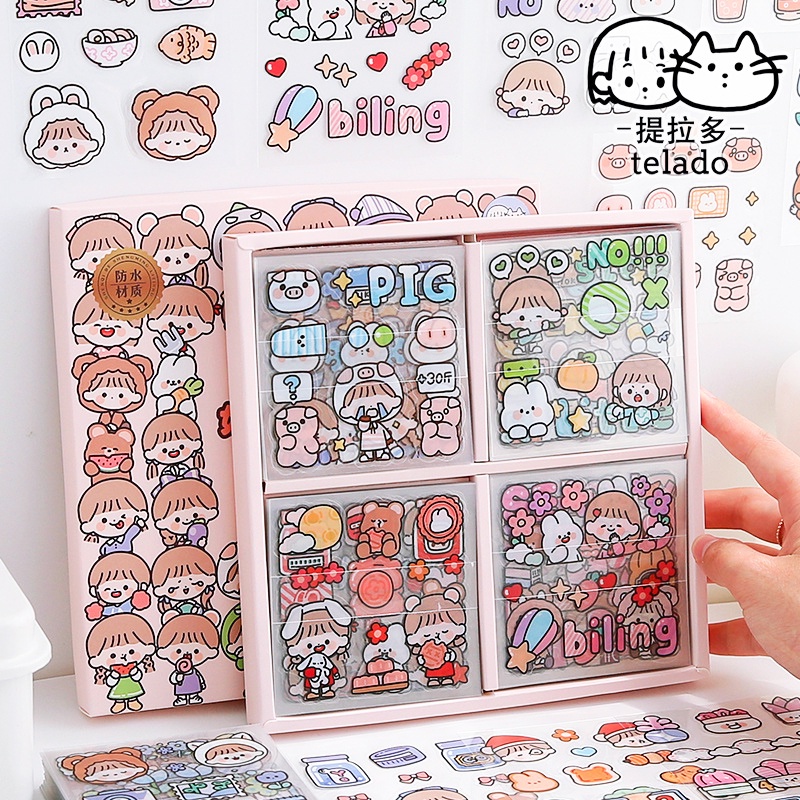 Cream Rabbit Diary Deco Stickers Collection Box Set / Stiker Set Box Lucu Deco