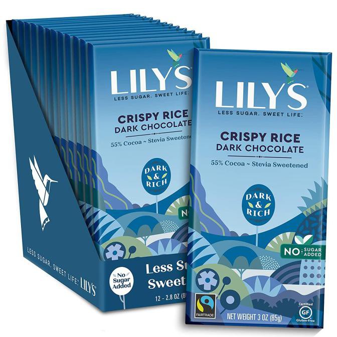 Sweetened with Stevia - Stevia is a zero-calorie botanical sweetener. It is derived from the plant Stevia Rebaudiana. Stevia has sweetened foods and beverages for centuries. Our use of Stevia gives Lily's natural richness and less sugar than typical chocolates.