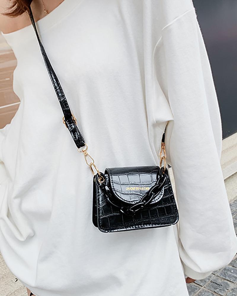 Croc Embossed Chain Strap Crossbody Bag, Black
