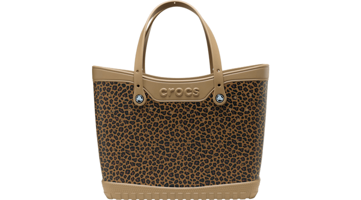 Why get the same old tote bag when you can make this one your own? Perfect for carrying items to the pool, beach, park, or anywhere, the Crocs Classic Large Tote is durable, spacious, and as Classic as our clogs. And this version features a stylish cheetah print. Like all our totes and bags, it’s durable, spacious, and as Classic as our clogs. The best part? You can add Jibbitz™ charms to make your tote one-of-a-kind, unlike any other on earth. Form, function, a charming personality PLUS your stuff? You’ve got it in the bag. Crocs Cls L Cheetah Tote Details: Stylish cheetah print Personalize with Jibbitz™ charms! 52 holes on each side, and 8 holes on each side of the straps Will fit as a carry-on (not a personal item) XL sizing for larger items Can be used to store and air out items, including Crocs shoes Top width tapers out for even easier visibility while base is slightly narrower Dipped curve on top of the bag allows for easier wearability from the shoulder and easier access to interior Tread on base keeps from slipping on wet surfaces or sliding in the car Overall molded detailing to mimic our iconic shoes Main compartment fits: up to 5 beach towels, throw blanket, snacks, drinks, toiletries Bag Body Dimensions: 15.00” H x 20.75” W (measured from widest width at the top opening) x 8” Base Width 17.0” W Strap Drop 11” 25” overall length from strap to base