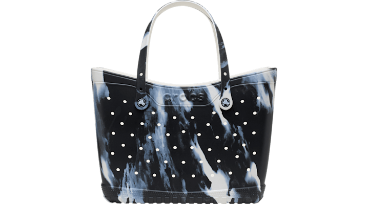 Why get the same old tote bag when you can make this one your own? Perfect for carrying items to the pool, beach, park, or anywhere, the Crocs Classic Large Tote is durable, spacious, and as Classic as our clogs. And this version features our marbled Croslite™ material for a unique look. The best part? You can add Jibbitz™ charms to make your tote one-of-a-kind, unlike any other on earth. Form, function, a charming personality PLUS your stuff? You’ve got it in the bag. Crocs Classic Large Marble Tote Details: Unique marbled effect Personalize with Jibbitz™ charms! 52 holes on each side, and 8 holes on each side of the straps Will fit as a carry-on (not a personal item) XL sizing for larger items Can be used to store and air out items, including Crocs shoes Top width tapers out for even easier visibility while base is slightly narrower Dipped curve on top of the bag allows for easier wearability from the shoulder and easier access to interior Tread on base keeps from slipping on wet surfaces or sliding in the car Overall molded detailing to mimic our iconic shoes Main compartment fits: up to 5 beach towels, throw blanket, snacks, drinks, toiletries Bag Body Dimensions: 15.00” H x 20.75” W (measured from widest width at the top opening) x 8” Base Width 17.0” W Strap Drop 11” 25” overall length from strap to base
