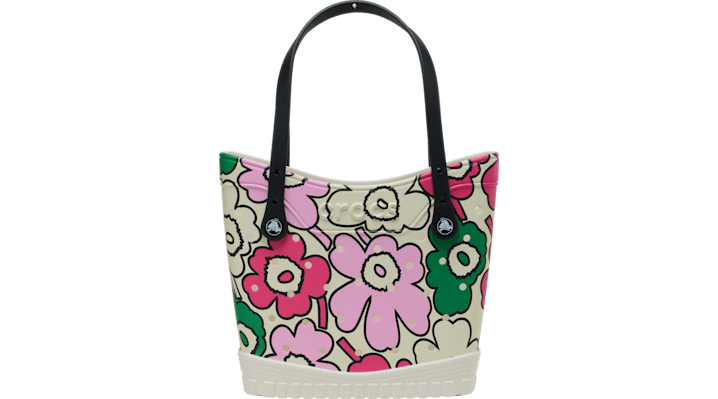 Your new go-everywhere bag is here with the Marimekko x Crocs Classic Medium Tote. The vibrant Unikko floral print was created by Maija Isola in 1964 and is the first pattern to ever be featured on our tote bags, the perfect design to let your style bloom. The structured shape and tread base allows for versatile use, with over 68 holes to showcase your favorite Jibbitz™ charms. Crocs Classic Marimekko Medium Tote Details: Personalize with Jibbitz™ charms! 30 holes on each side and 4 on each strap All-over Marimekko Unikko print created by Maija Isola in 1964 Top width tapers out for even easier visibility while base is slightly narrower Dipped curve on top of the bag allows for easier wearability from the shoulder and easier access to interior Tread on base keeps from slipping on wet surfaces or sliding in the car Overall molded detailing to mimic our iconic shoes Main compartment fits: phone, wallet, small umbrella, notebook, cosmetics, snacks, water bottle Bag Body Dimensions: 12.5” H x 15” W (measured from widest width at the top opening) x 5” D Base Width: 12” W Strap Drop: 11” 21” overall length from strap to base Weight: 0.6 kg