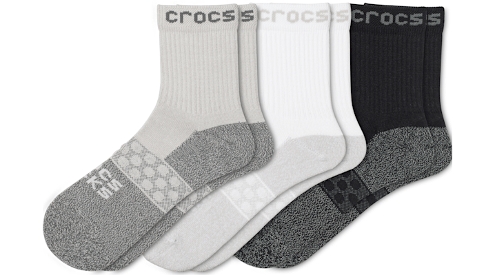 Be comfortable anywhere and everywhere in your own shoes—and now in your own Crocs Socks. Each pair has been engineered with high-quality elastic to help socks stay up, twisted and compacted yarn for improved durability, and a mesh arch band for fit and comfort. Plus, they’re a stylish addition to your everyday look whether you’re lounging or leveling up your favorite outfits. Crocs Socks Adult Quarter Solid 3-Pack Details: 65.3% cotton, 19.3% nylon, 13.2% polyester, 2.2% elastane Machine Wash in 40 C / 104 F Do not bleach or iron. Tumble dry on low