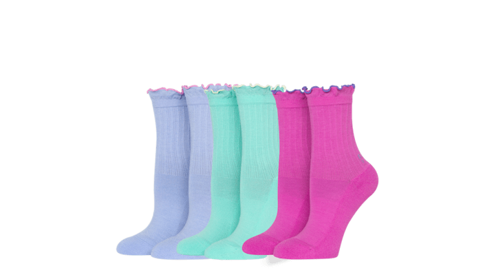 Be comfortable anywhere and everywhere in your own shoes—and now in your own Crocs Socks. Each pair has been engineered with high-quality elastic to help socks stay up, twisted and compacted yarn for improved durability, and a mesh arch band for fit and comfort. Plus, they’re a stylish addition to your everyday look whether you’re lounging or leveling up your favorite outfits. Go wild with this 3-pack by pairing them up or mixing and matching your socks style. CrocsSocks Ruffle Ankle 3-Pack Details: 65.3% cotton, 19.3% nylon, 13.2% polyester, 2.2% elastane Machine Wash in 40 C / 104 F Avoid bleaching or ironing, tumble dry low Unique patterns and colors inspired by Crocs Classic shoes and Jibbitz™ charms Available in a variety of low, crew and quarter heights Includes three matching pairs