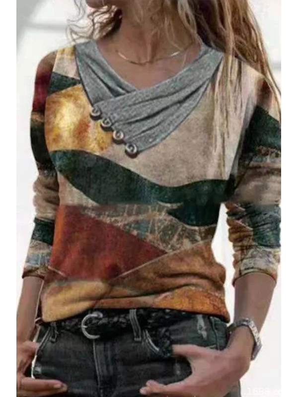 sweatshirts,cross v-neck button printed long-sleeved sweatshirt