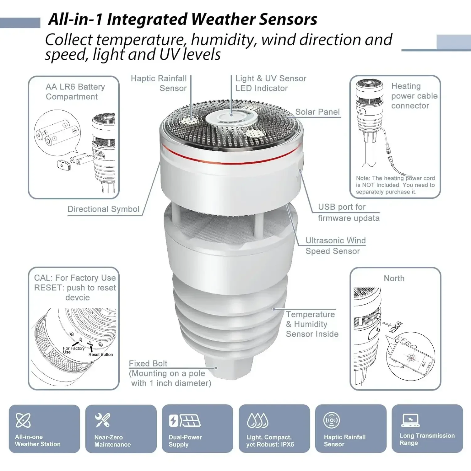 Cross-borderPro Weather Station HP2564, With 7 Inch Display Console And WS90 Outdoor Weather Sensor