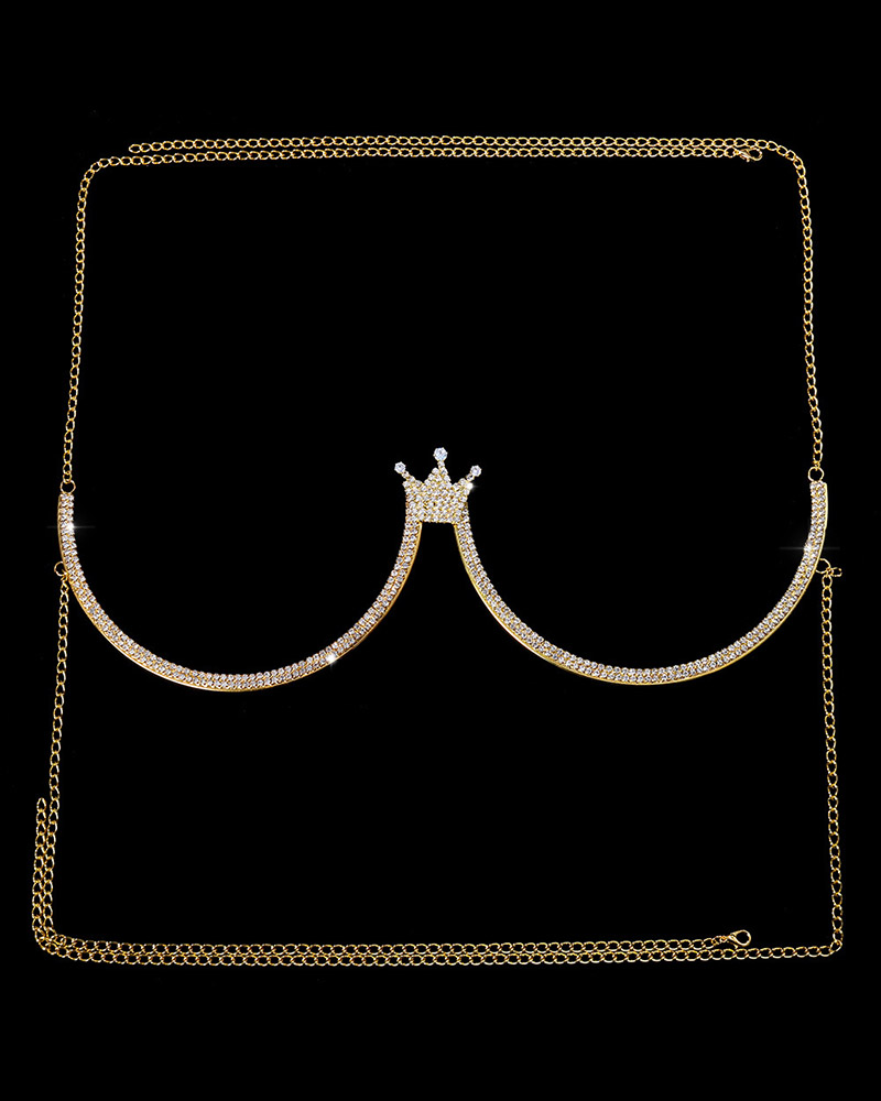 Crown Pattern Rhinestone Curved Body Chain, Gold