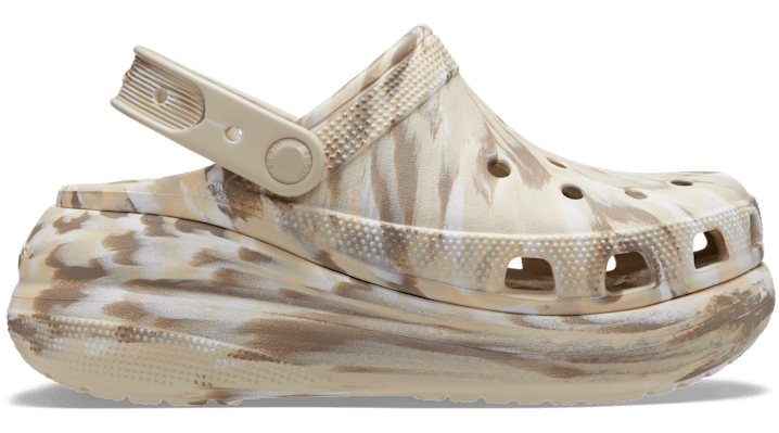 For a fresh new take on your favorite clog, look to the Classic Crush Clog — and this version features our marbled Croslite™ material. While all marbled shoes have the same wavy look, no two shoes are exactly alike. Added height, a bold design, and a unique marbled look combine in this stylish clog. Plus, you’ll enjoy many personalization options, with Jibbitz™ charm holes on the upper and the pivoting backstrap. The Crocs comfort you love, plus an extra dose of height, attitude, and style. Crush Marbled Clog Details: Bold styling and added height Marbled effect unique to every shoe Unique 2-inch / 5.2cm height, measured from floor to heel rest Customizable with Jibbitz™ charms Iconic Crocs Comfort™: Lightweight. Flexible. 360-degree comfort.