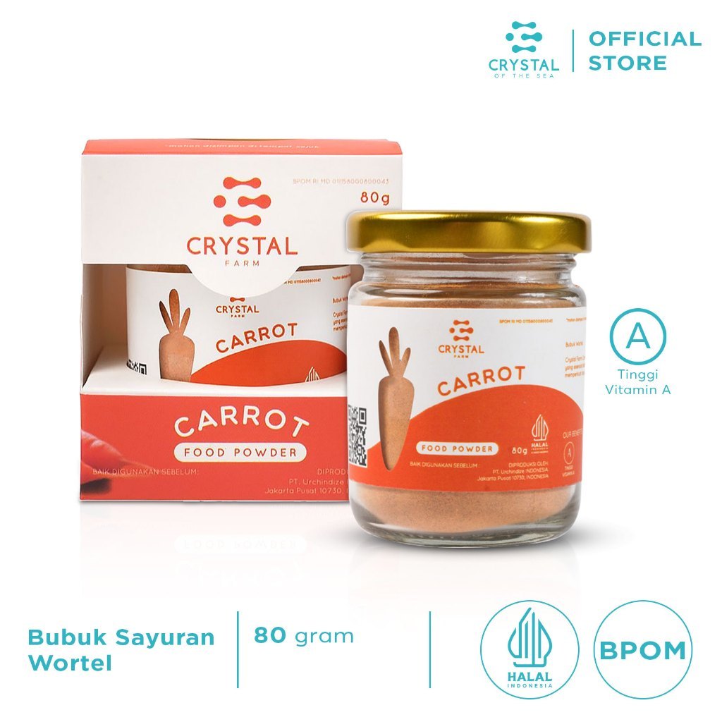 Crystal Sea Carrot Food Powder terbuat dari Wortel berkualitas premium . Telah melalui proser sortir untuk memastikan bebas dari kotoran. Mengandung Vitamin A, Biotin, Vitamin K1 dan Vitamin B6, yang baik untuk menjaga kesehatan mata, memperkuat daya tahan tubuh dan menjaga kadar gula darah.