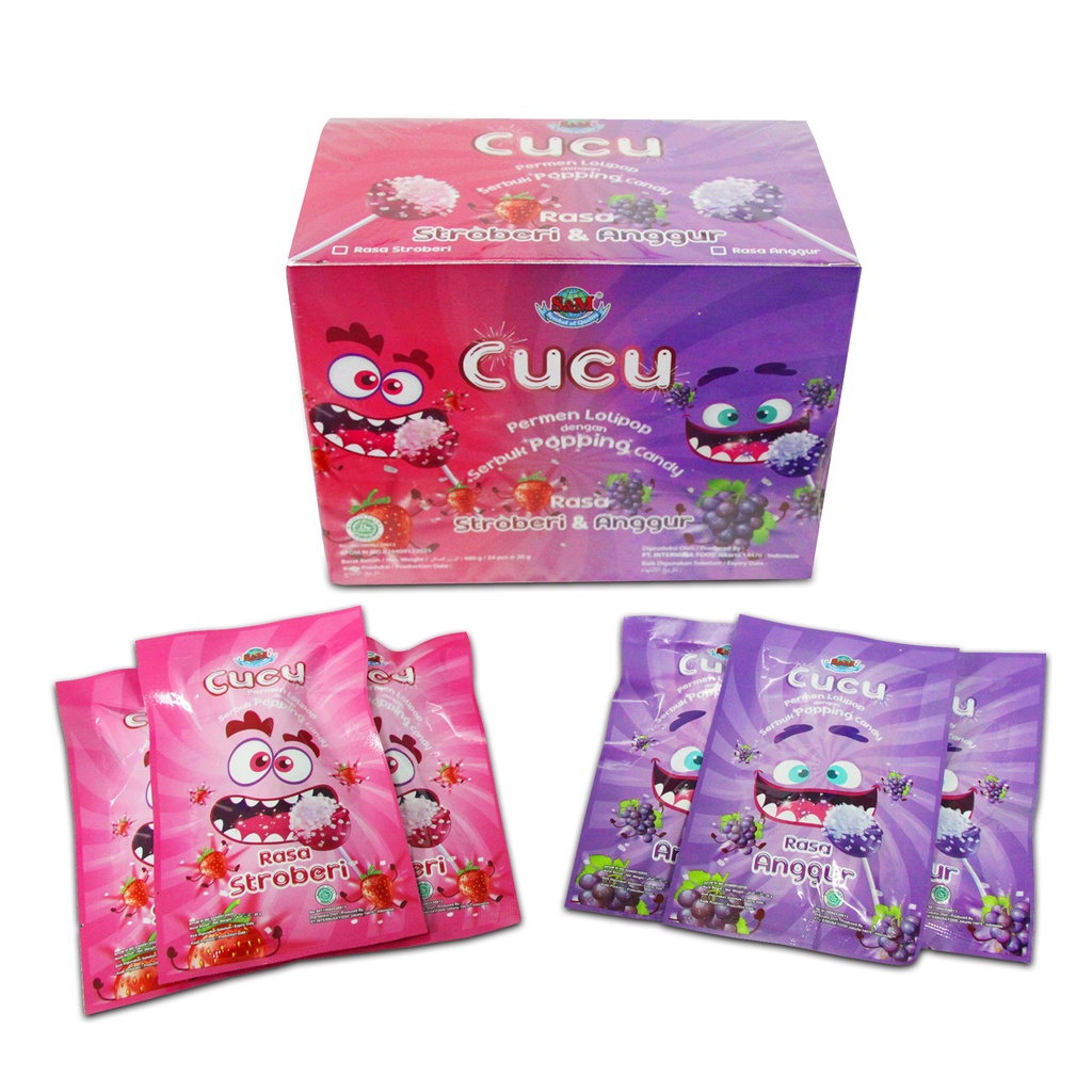 Cucu Popping Rasa Stroberi (1 BOX / 24 PCS)