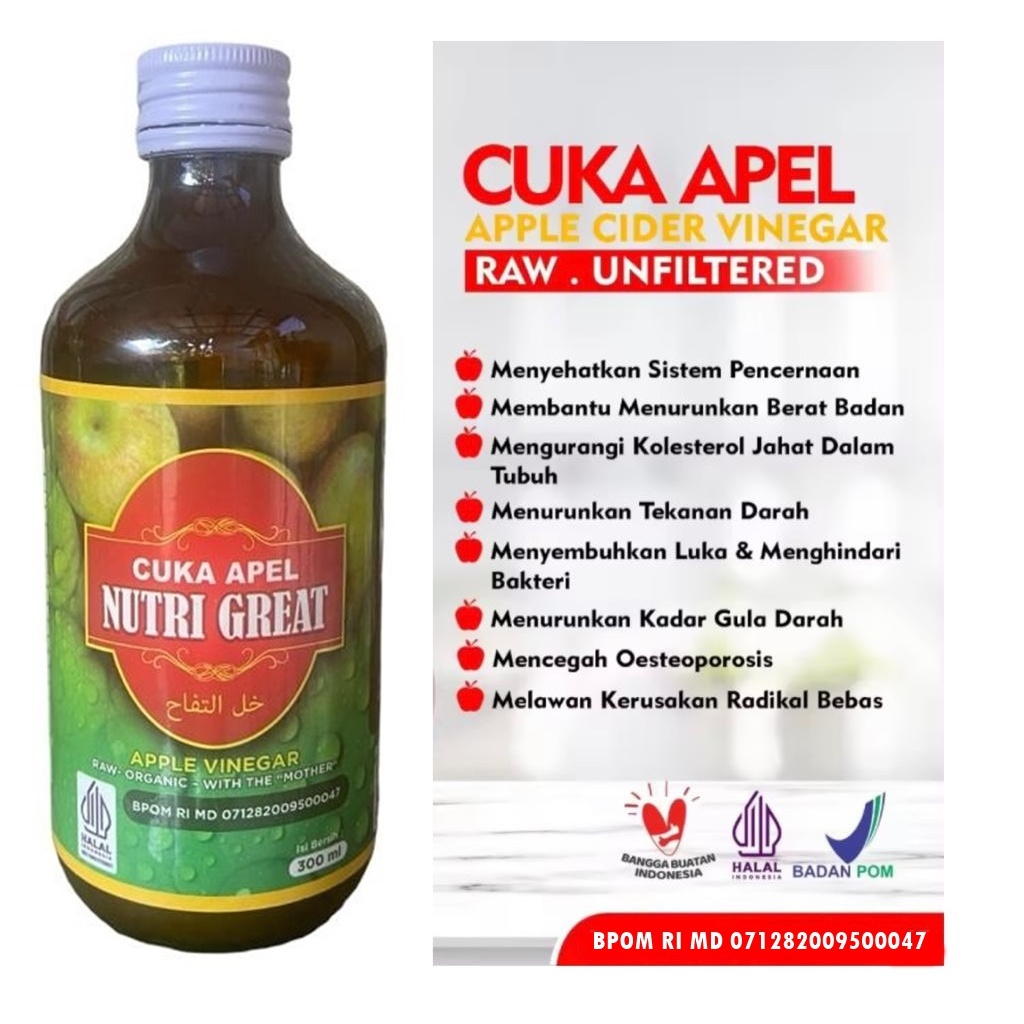 Cuka Apel NUTRI GREAT 100% Alami / Cuka Apel Nutri Great 300ml