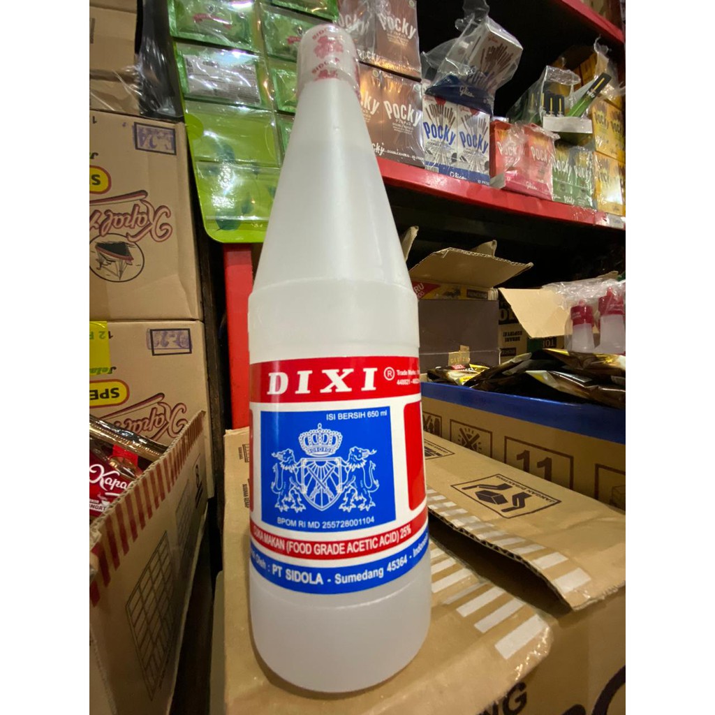DIXI Makan Cuka 650 mL merupakan asam cuka atau asam asetat (acetic acid) dengan senyawa kimia organik yang dikenal sebagai pemberi rasa asam dan aroma dalam makanan, serta dapat berfungsi sebagai pengawet bahan makanan.