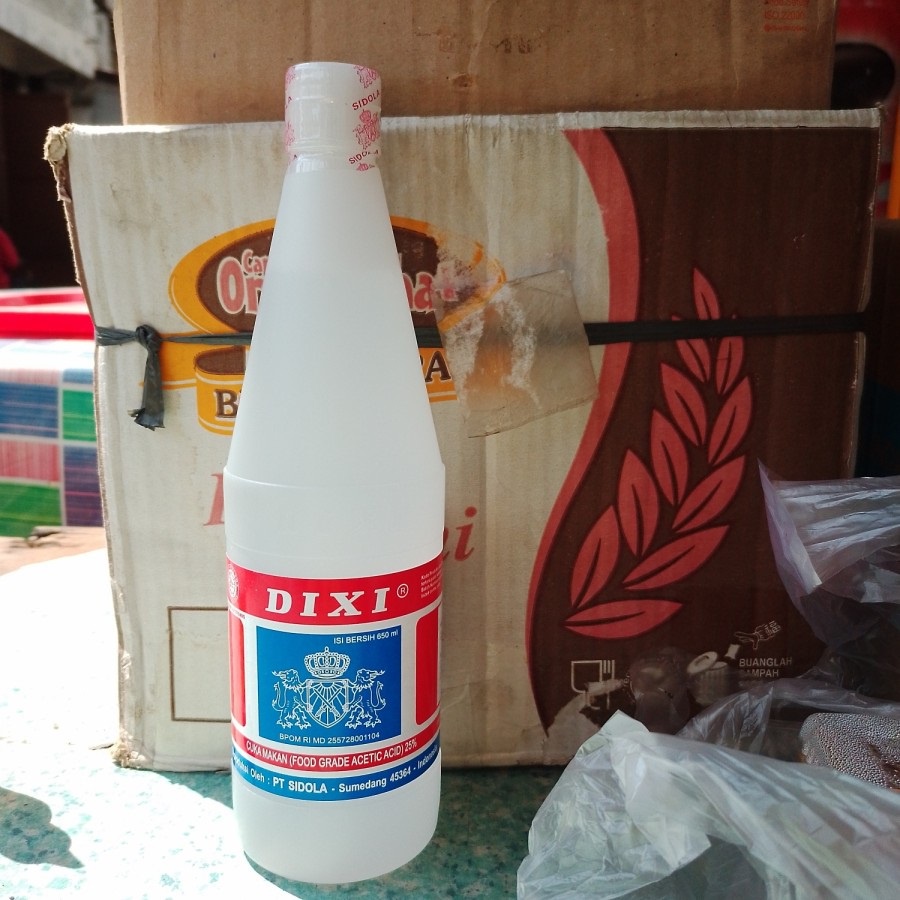 Cuka masak merk DIXI, harga tertera untuk 1 botol kemasan 650 ml