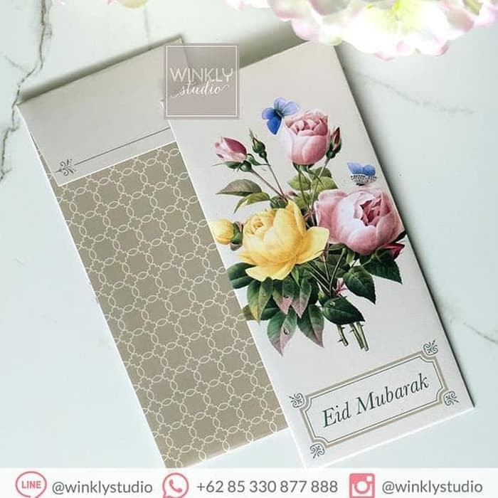Bisa juga request edit teks di desain angpao tanpa tambahan biaya. "Selamat Idul Fitri" bisa diganti "Eid Mubarak", "Congratulations", "Best Wishes", dan sebagainya.