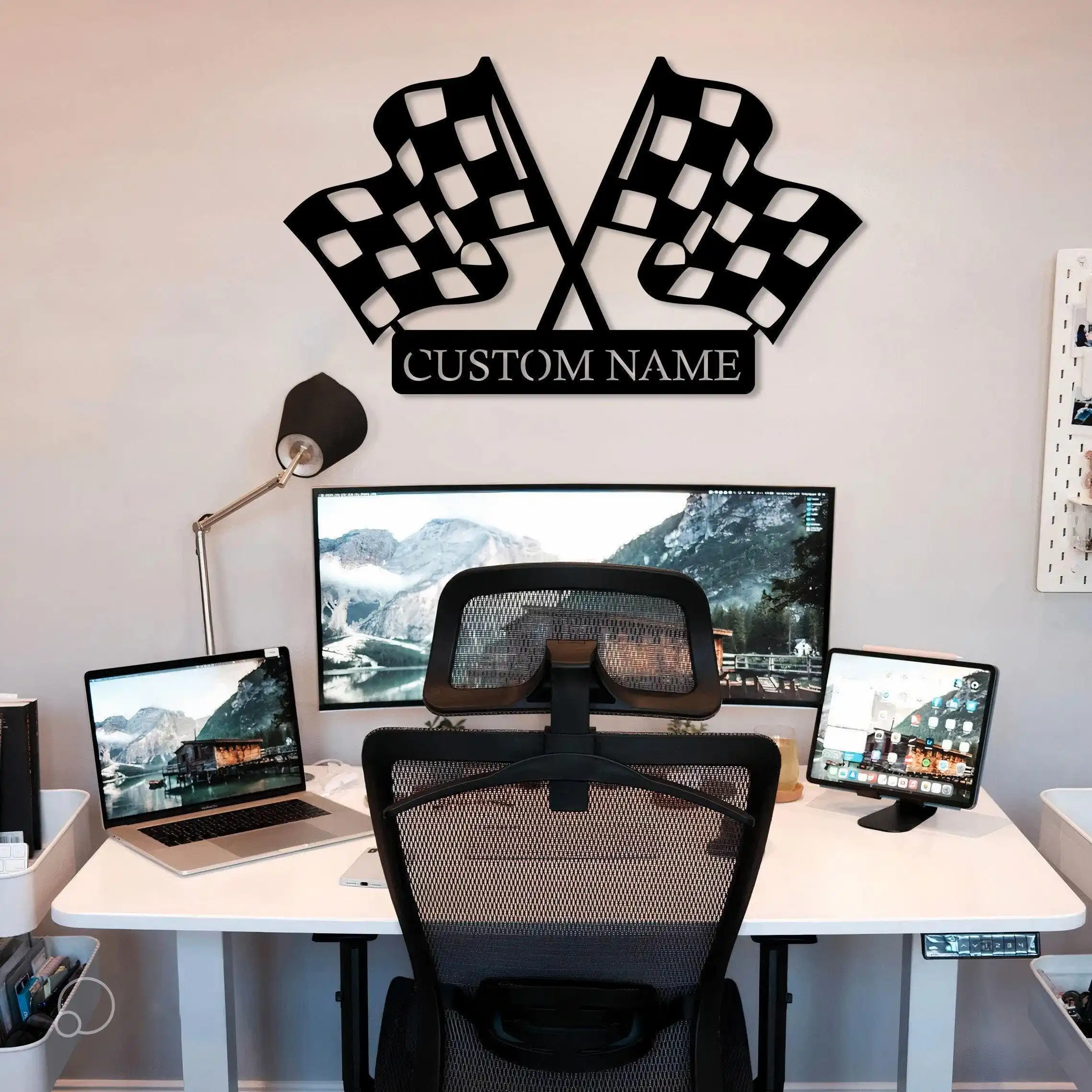 Custom Checkered FlagMonogram Racing Sign, Personalized Gift for Racer, Custom Finish Flag Name Sign, Racing Flag Metal Art