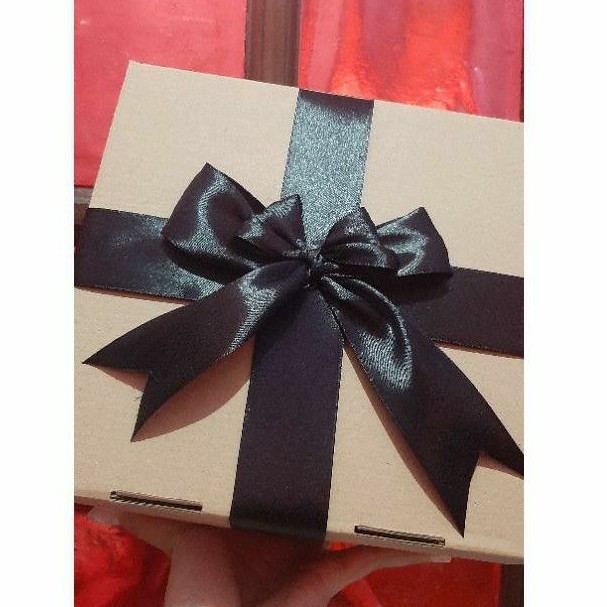 Ukuran kotak, warna pita, dan tulisan bisa sesuai keinginan.