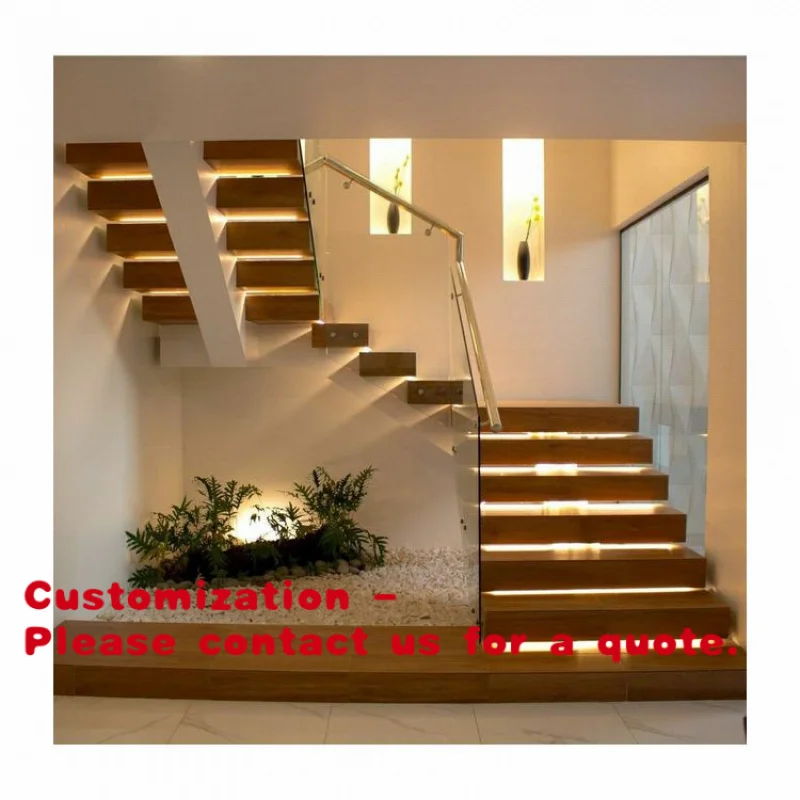 Customize.Indoor Light Home Stairs with Floating Design and Glass Railing