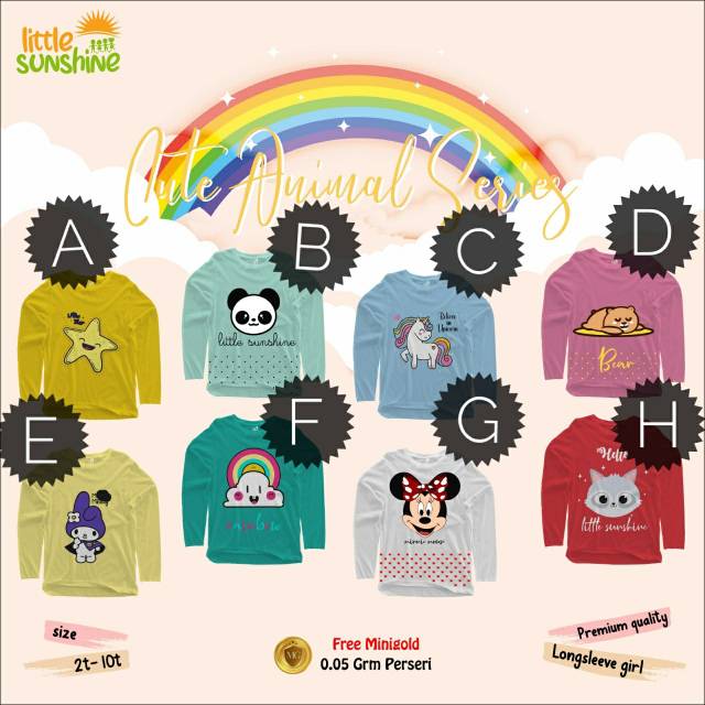 Kali ini little sunshine kembali menghadirkan produk terbaru kaos lengan panjang cewek dengan size 2-10t