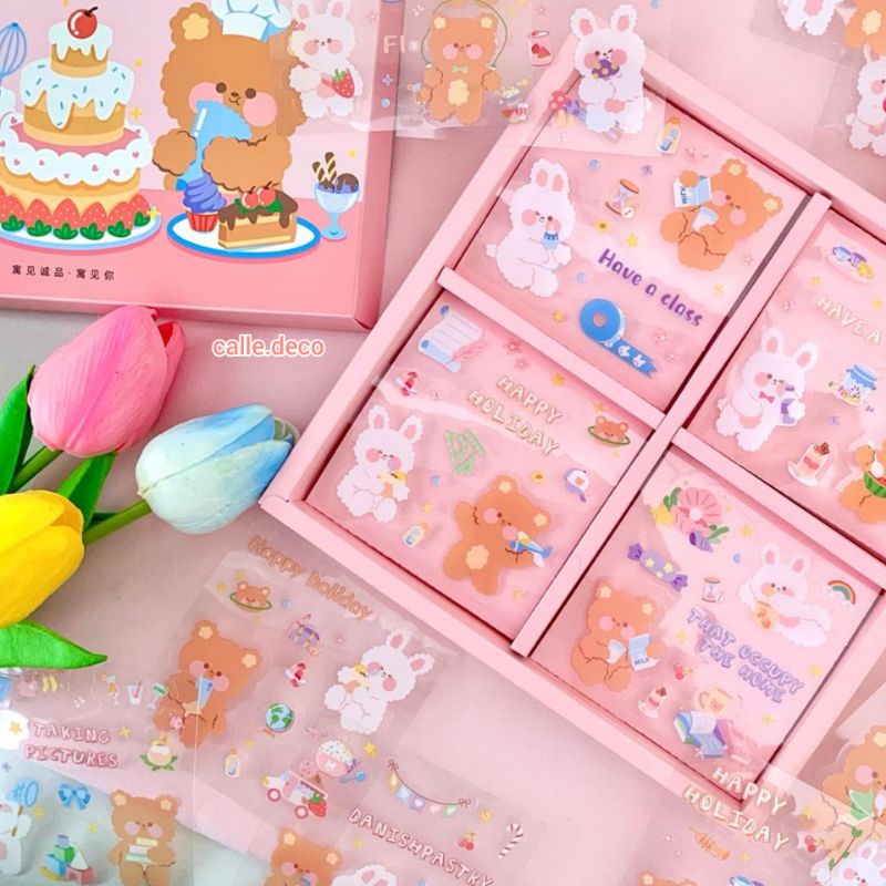 Cute Bear & Rabbit Diary Edition Sticker Deco PVC / Mini Sticker Cute / Stiker Tumblr Aesthetic / Stiker HP/ Stiker DIY Jurnal (Random)