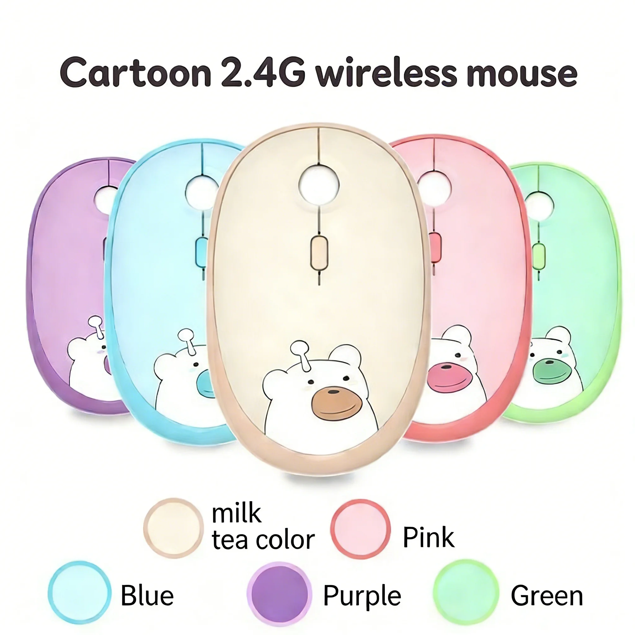 Cute Cartoon 2.4G Wireless Mouse Silent Click Adjustable DPI For Women Office Laptop PC
