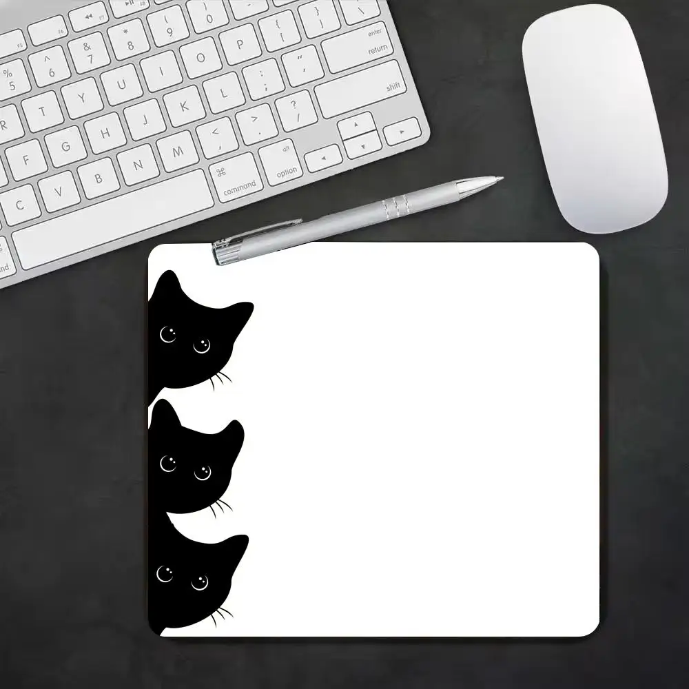 Cute Cartoon Black Cat Mouse Pad Small Gamer Desk Mat Square Gaming Office Accessories Rug Mousepad Rubber Keyboard Table Mats