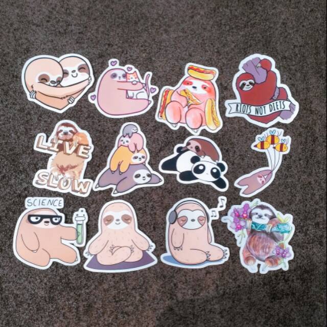 Cute Sloth Waterproof Sticker Pack include 12 pcs