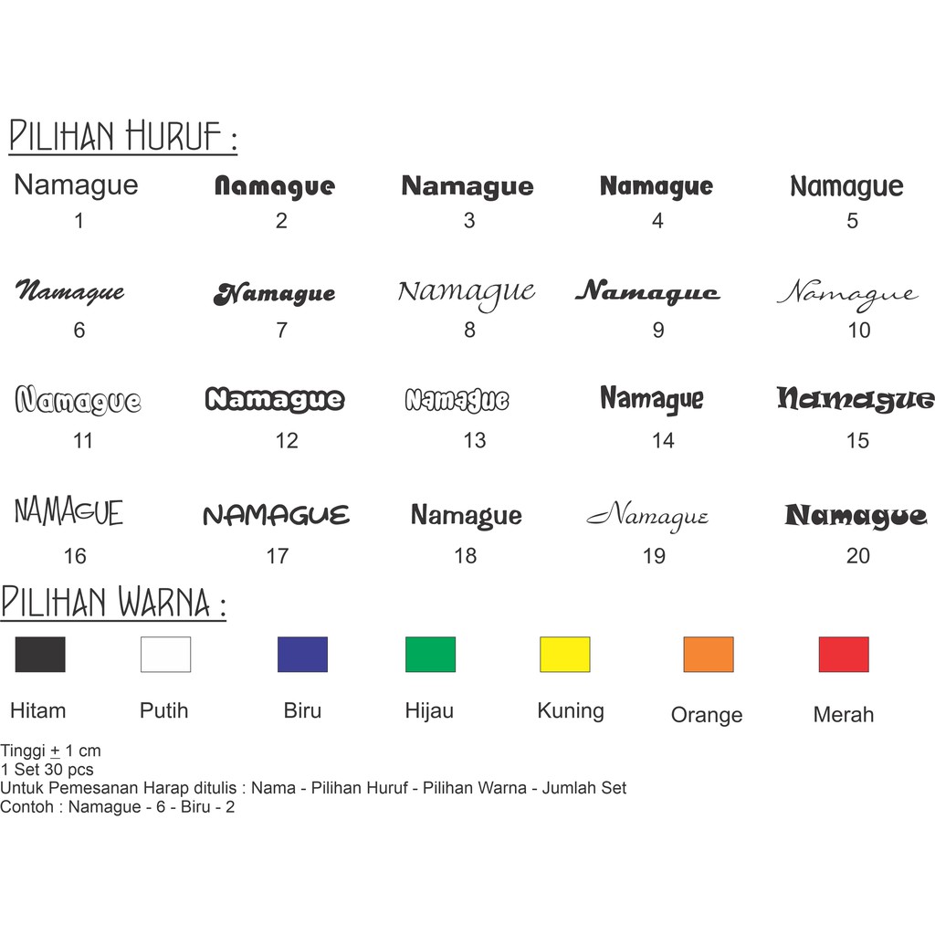 1. Satu set sticker nama hanya untuk 1 nama dan 1 warna.