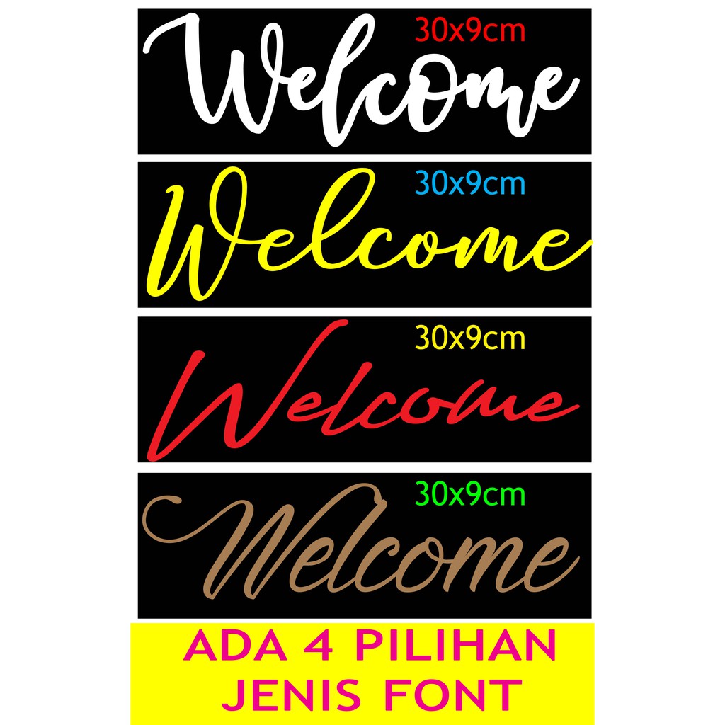 Cutting sticker hanya WELCOME saja seperti digambar, ukuran seperti digambar. Harga untuk 1pcs sticker welcome.