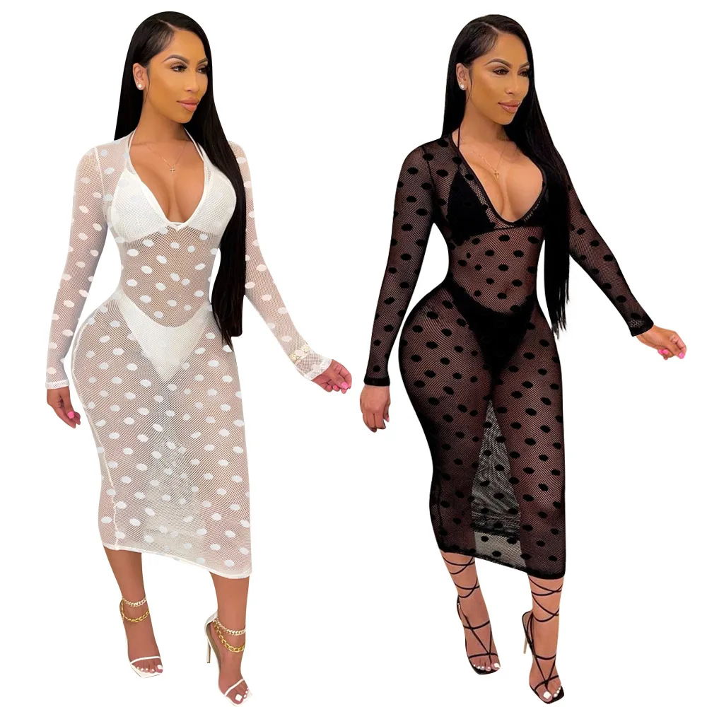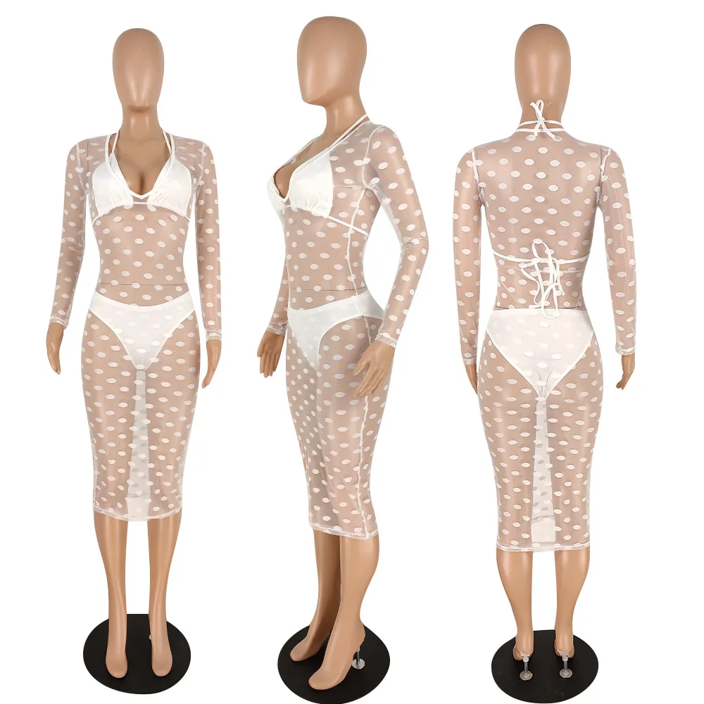Cutubly с узором в горошек, с длинными рукавами для малышей платье сексуальный комплект бикини с лямкой на шее С ТРУСИКАМИ ТОНГ, пляжный бикини ...