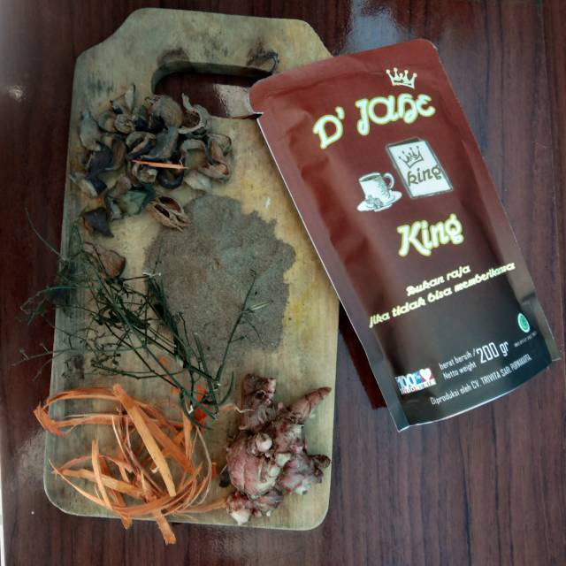 Produk minuman jahe merah serbuk instant tinggal Seduh. Komposisi Jahe merah, gula aren, gula pasir, sambiloto, kayu secang, mahkota dewa, lada hitam.