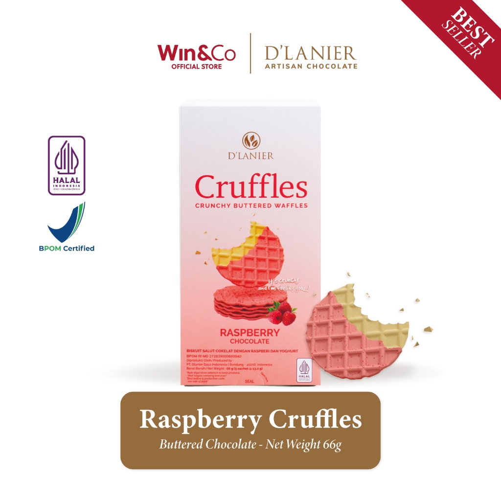 Crunchy waffle yang dibalut dengan cokelat berkualitas tinggi, bertabur buah Raspberry asli yang dikeringkan.