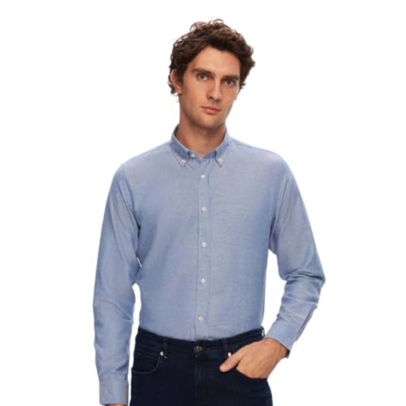 D S DAMAT, однотонная хлопковая классическая рубашка с длинным рукавом, стандартный крой, классический воротник, деловая рубашка, подарок для мужчины, классическая рубашка, официальная пуговица XXL темно-синий