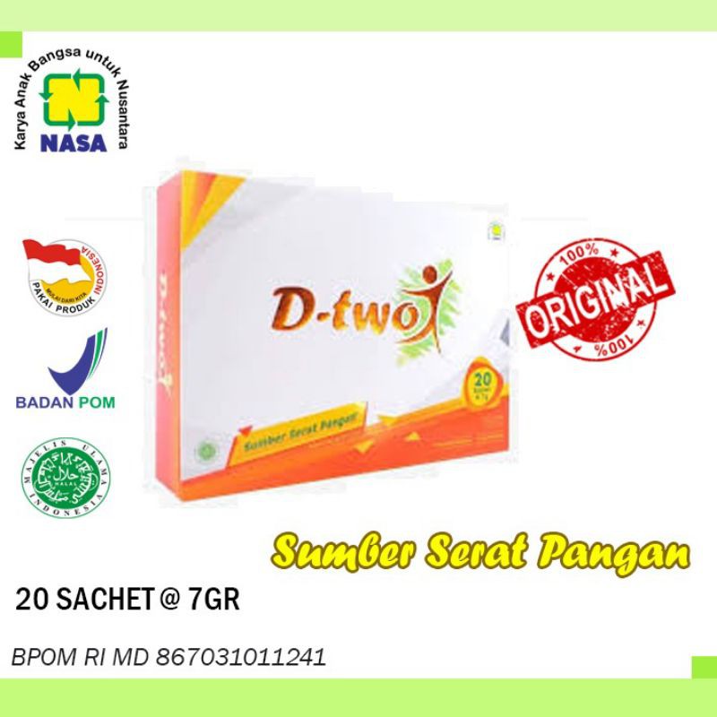 D-Two merupakan kombinasi sayuran dan herbal alami yang tinggi akan serat sehingga baik dikonsumsi untuk membantu menjaga kesehatan pencernaan dan melancarkan buang air besar.