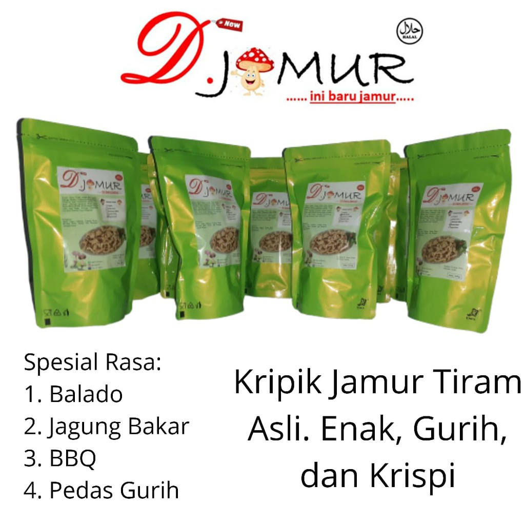 D.Jamur rasa merupakan Kripik jamur tiram asli tanpa bahan pengawet yang hadir dengan 4 varian rasa yaitu balado, jagung bakar, pedas gurih, dan BBQ. Enak rasanya, nikmat, gurih, dan kress.
