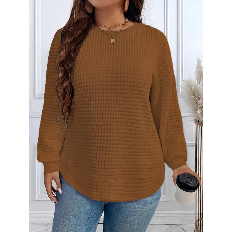 DAFIFY Женская мода Повседневные Весенне-осенние Однотонные Блузки и Рубашки с Принтом, с Длинным Рукавом и Круглым Вырезом XXXXXL темно-коричневого