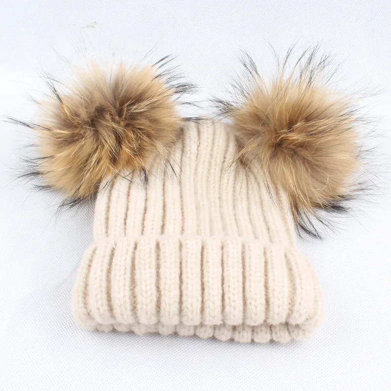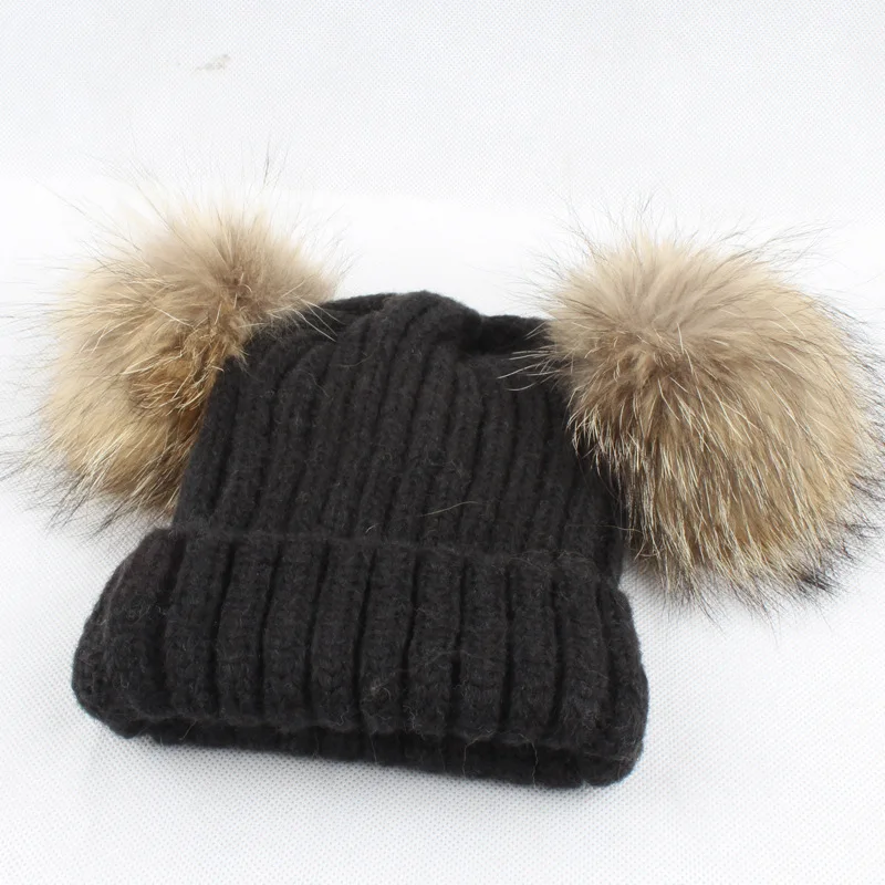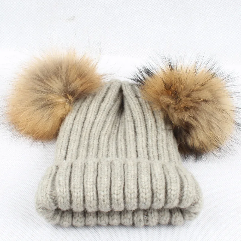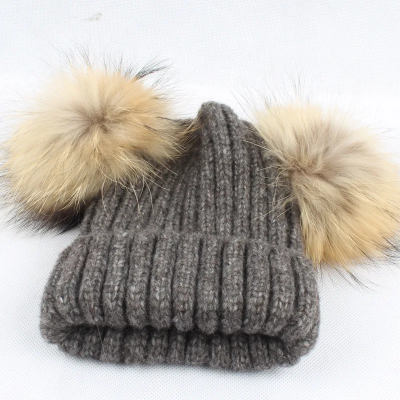 DANKEYISI, шапка с помпоном из натурального меха, женская зимняя шапка, Вязаная кашемировая теплая шапка с двумя помпонами, вязаная Лыжная шапка для девочек и мальчиков, женская шапка