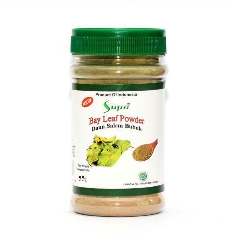 Supa Daun Salam Bubuk Botol merupakan bumbu masak berbentuk bubuk daun salam yang dapat digunakan untuk penyedap dan pengharum masakan. Daun salam instan yang dikemas dengan praktis, mudah digunakan untuk menyedapkan setiap masakan agar semakin kaya akan rasa dan enak sempurna. bersertifikasi ISO 22000, BPOM, dan Halal-MUI. Diproses tanpa bahan campuran.