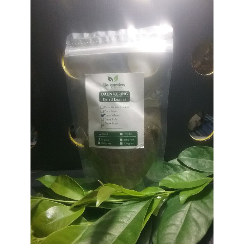 Daun dikeringkan dengan cara di angin2 dalam suhu ruangan untuk menjaga kemurnian aroma dan rasa dan menjaga tetap higenis, kemudian diproses menjadi bubuk sehingga mempermudah penggunaannya.