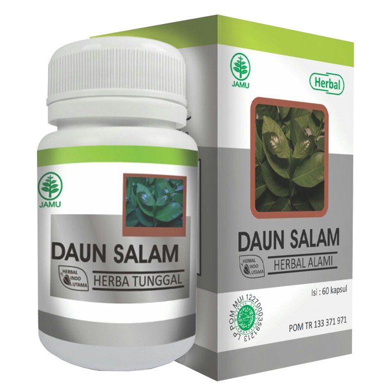 Meskipun daun salam ini mudah ditemukan, namun demi kepraktisan dalam melakukan pengobatan sekarang sudah tersedia ekstrak daun salam yang dikemas dalam bentuk kapsul. Kapsul Daun Salam yang diproduksi oleh CV. Herbal Indo Utama ini salah satunya. Daun Salam Herbal Indo Utama merupakan herbal tunggal yang hanya terdiri satu bahan utama yakni ekstrak daun salam tanpa campuran bahan lain.