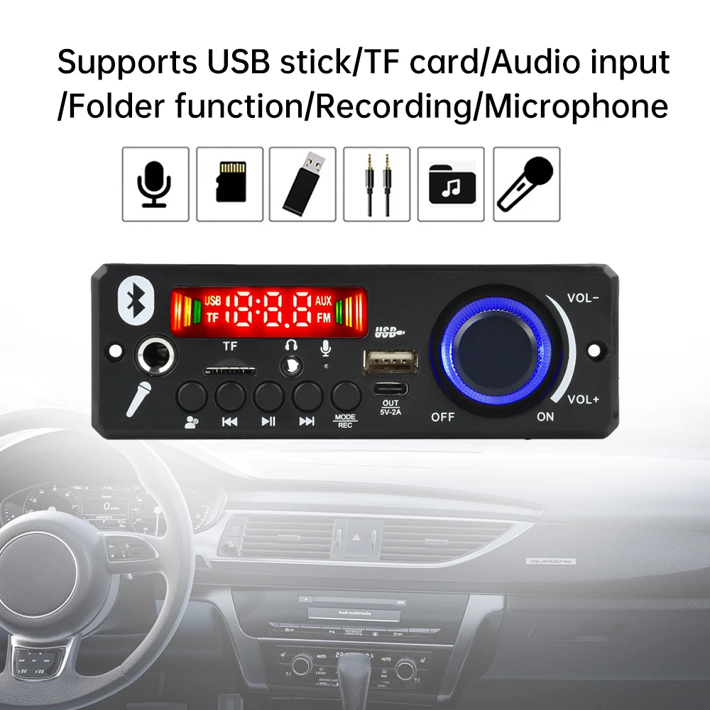 DC 12V Car Bluetooth MP3 Amplifier Decoding Board 2x80W Bluetooth FM Decoder with Power-Off Memory Function