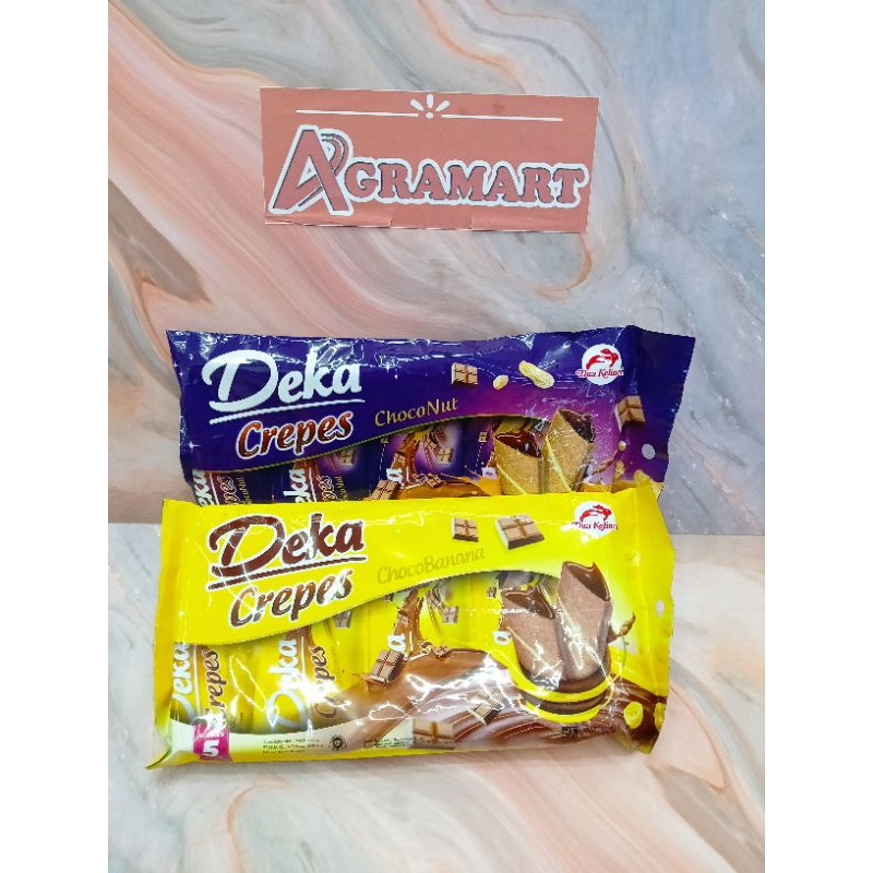 Deka crepes adalah wafer lipat dengan teksturnya yang tipis, dibuat dengan formulasi khusus menghasilkan kombinasi yang lezat dan nikmat berpadu dengan kerenyahan wafer,memberikan sensasi yang istimewa dibandingkan wafer biasa