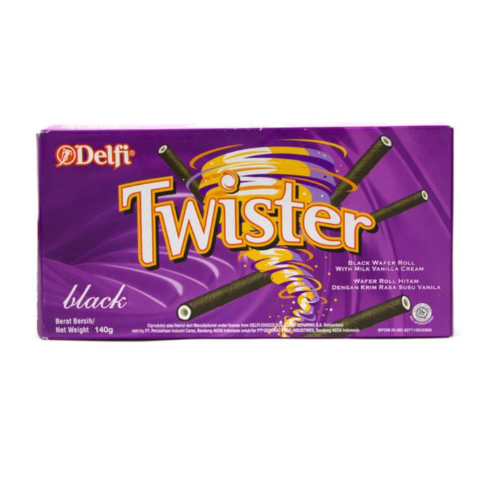 DELFI Twister Black/Choco [140 g] merupakan wafer dengan memadukan resep rahasia dan bahan yang berkualitas sehingga menghasilkan wafer renyah yang memiliki kemurniaan, kelembutan, dan kesempurnaan rasa. Dapat dinikmati bersama teman dan keluarga.