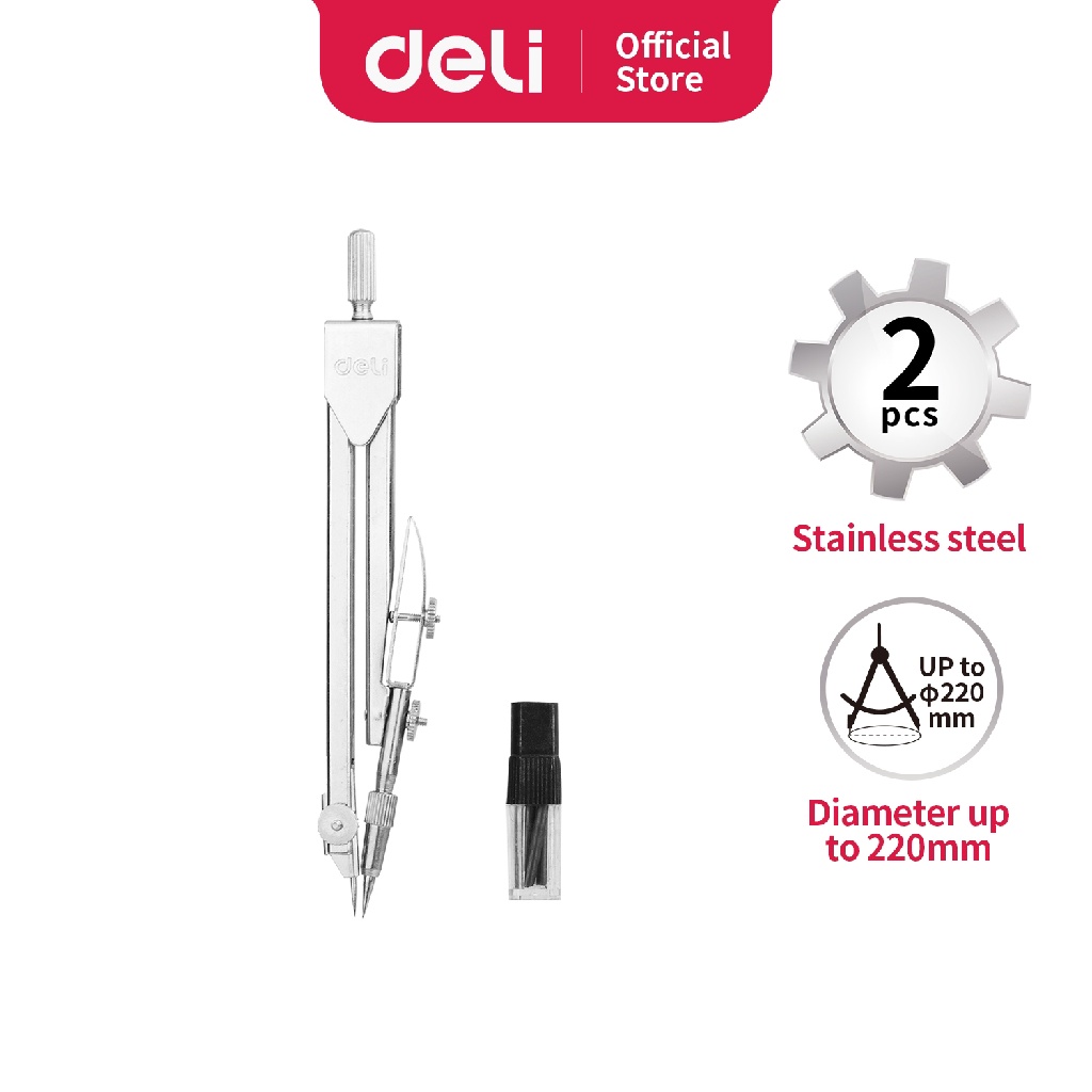 Deli E8601 Jangka-Metal dengan Pencil-Silver