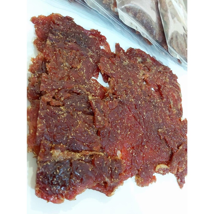 Terbuat dari Daging Sapi Pilihan dan di Racik dengan menggunakan Rempah Tradisional Indonesia yang berkualitas, sehingga menghasilkan Dendeng Sapi dgn kuailtas Super