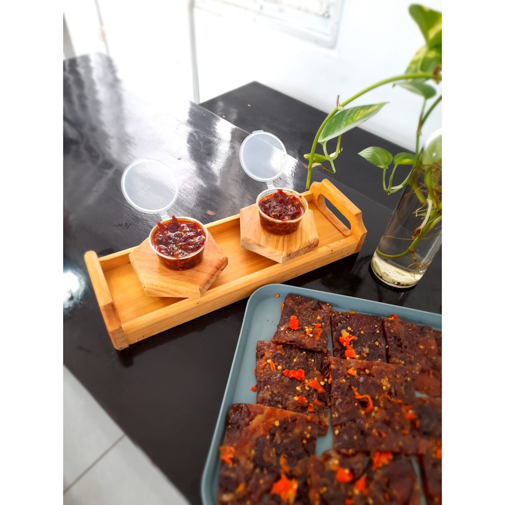 Varian Dendeng Sapi Full Daging Pedas ini dibuat secara homemade tanpa bahan pengawet dan dijamin HALAL pastinya, terbuat dari irisan daging pilihan tanpa campuran lemak yang teksturenya berbeda dengan dendeng biasa (kere) dan dipadukan dengan cabe rawit segar membuat makin sedap di mulut karena sensasi pedasnya yang siap menggoyang lidah dan membuat ingin menambah nasi terus.