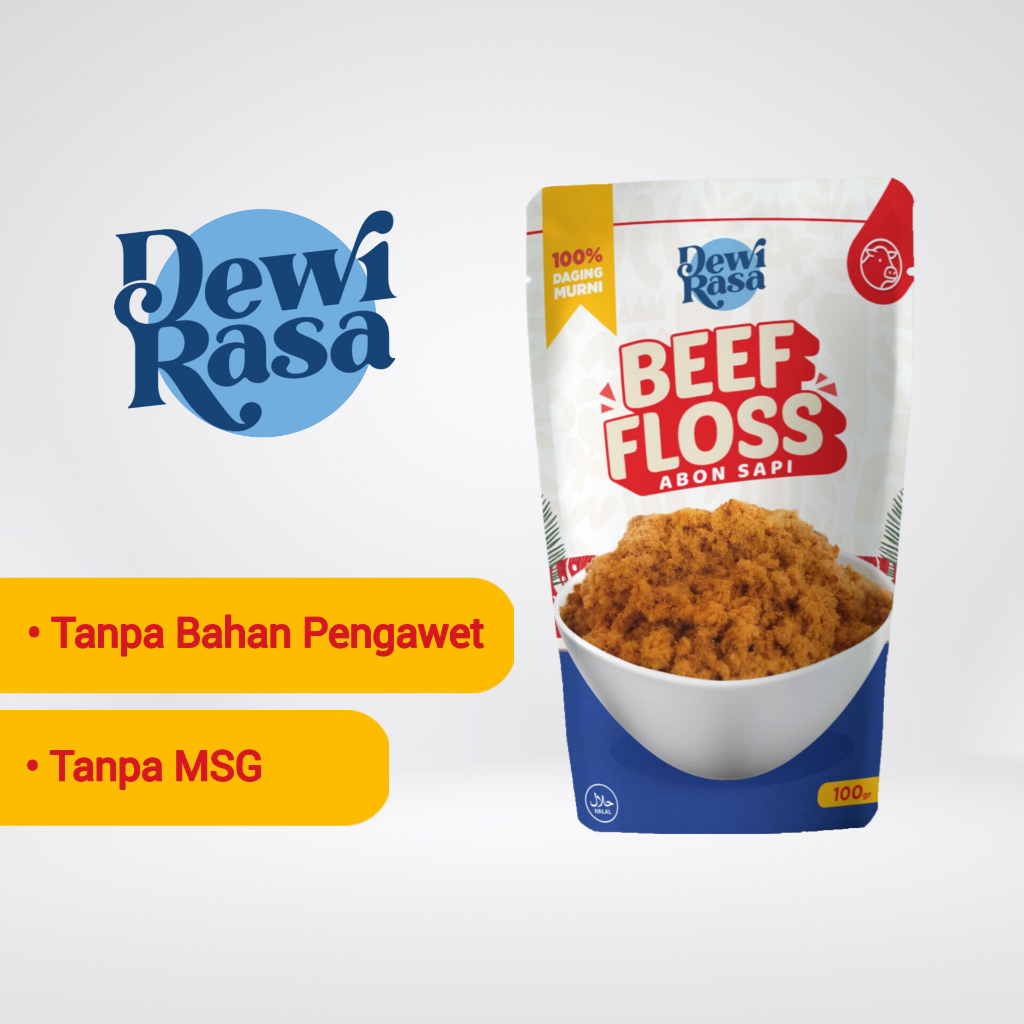 Dewi Rasa Abon Sapi Original 100 gr dibuat dari 100% daging sapi asli yang dibuat dan dikemas menjadi Abon Sapi dengan menggunakan resep dan bumbu pilihan menghasilkan perpaduan rasa daging sapi manis dan gurih.