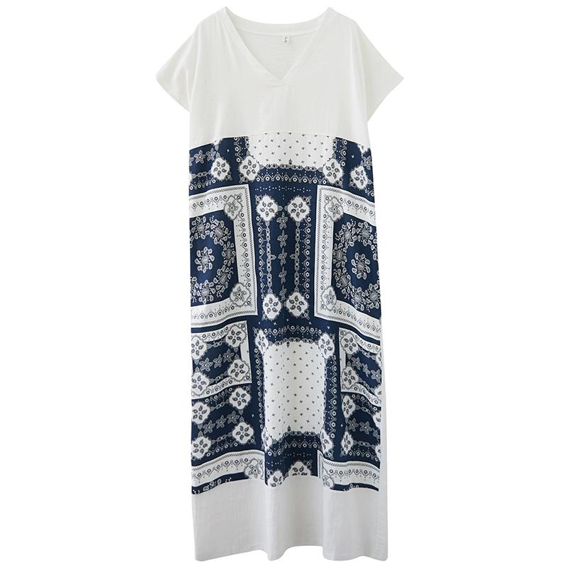 DIMANAF Женское платье больших размеров 2024, новое летнее стильное платье с v-образным вырезом и цветочным принтом, зеленое льняное базовое платье 2233 One Size белый