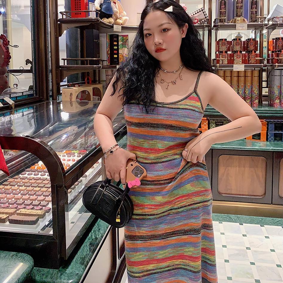 DIMANAF Новое летнее женское длинное трикотажное платье без рукавов в полоску большого размера с рукавами, базовые модные платья свободного покроя 2025 One Size