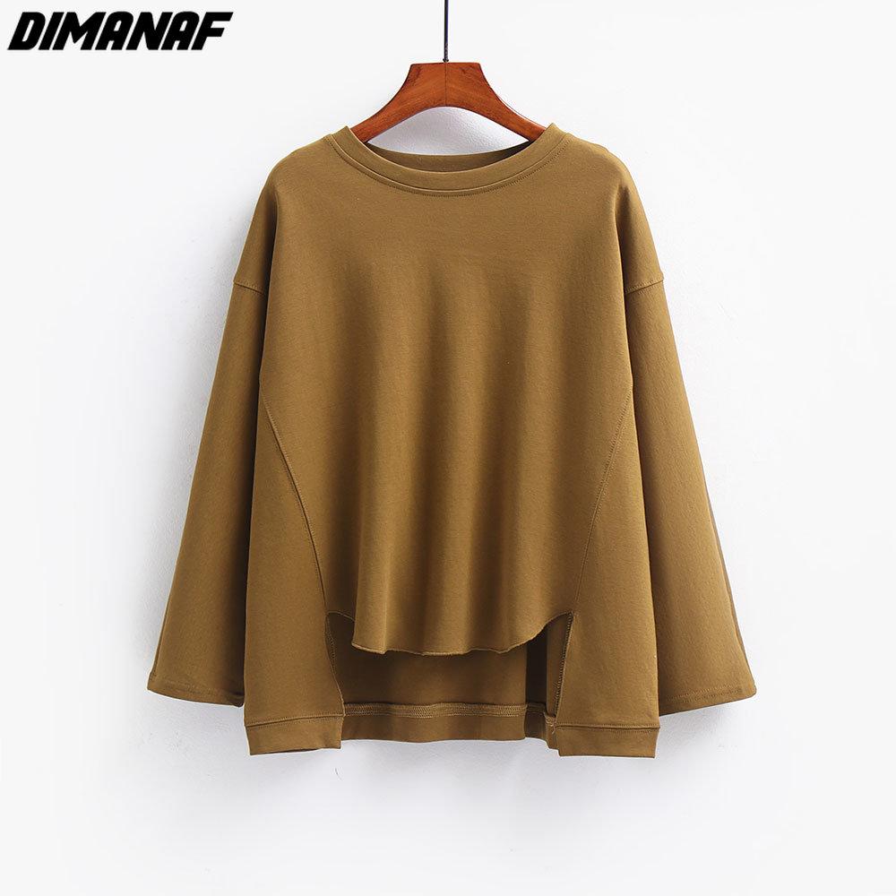 DIMANAF Футболка Новый Плюс Размер Женщины Твердые толстовки и толстовки Асимметричные подолы Свободный Повседневный O-neck Осень Базовые топы 2022 Новый пуловер Серый